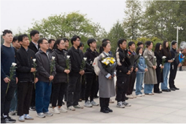 在镌刻着“人民英雄永垂不朽”的革命烈士纪念碑前,全体人员肃立默哀,通过高唱国歌、鞠躬献礼等庄严仪式,深切缅怀为民族独立和人民解放事业献出宝贵生命的革命先烈。
