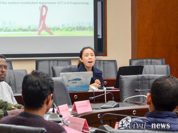 富院长致辞后,袁冉老师为留学生介绍了土木工程学院的底蕴与发展。袁老师从土木工程学院的辉煌历史,所培养的知名院士校友,目前的雄厚师资力量以及交大学生近年来获得的各类国家级、省部级竞赛奖项等方面为留学生做了细致讲解。无数宝贵的资源无一不展现着西南交通大学的独特魅力,留学生们的眼中满是期待与雄心。