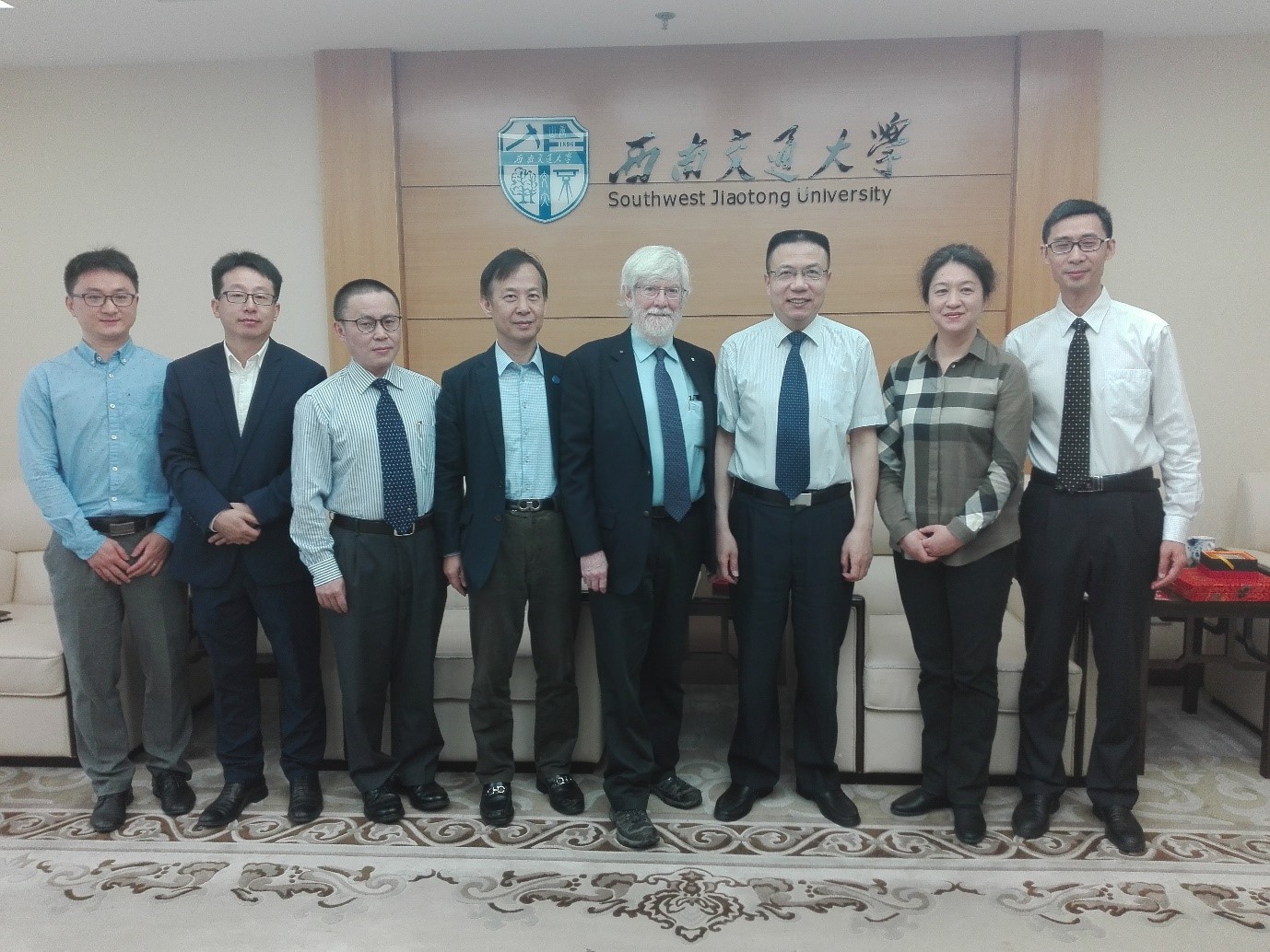 上午9:30,西南交通大学徐飞校长在犀浦校区会见了Rowe教授并颁发了名誉教授证书。土木工程学院蒲黔辉院长、富海鹰副院长、国际合作与交流处副处长郑海涛、土木工程学院教授陈嵘、刘凯文、袁冉等参加了会见。徐飞校长首先对Rowe教授到访西南交通大学表示了热烈的欢迎,并高度称赞了Rowe教授在国际岩土工程领域所取得的瞩目成就。徐飞校长表示,西南交通大学具有高速铁路核心学科优势,并高度关注土木工程和岩土学科的发展,希望Rowe教授把成都和西南交通大学作为人生新起点,为西南交通大学教育及科学研究工作的国际合作与交流,特别对岩土工程学科的发展提供强有力的支持。Rowe教授对徐飞校长以及西南交通大学的热情接待表示感谢。Rowe教授表示西南交通大学在工科领域,特别是交通运输和高速铁路工程建设的成就给他留下了非常深刻的印象,他非常期待和西南交通大学,特别是土木工程学院的合作。最后,徐飞校长和蒲黔辉院长分别向Rowe教授赠送了礼物。