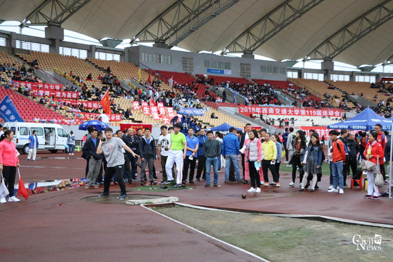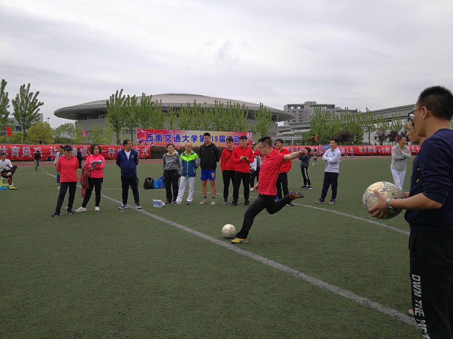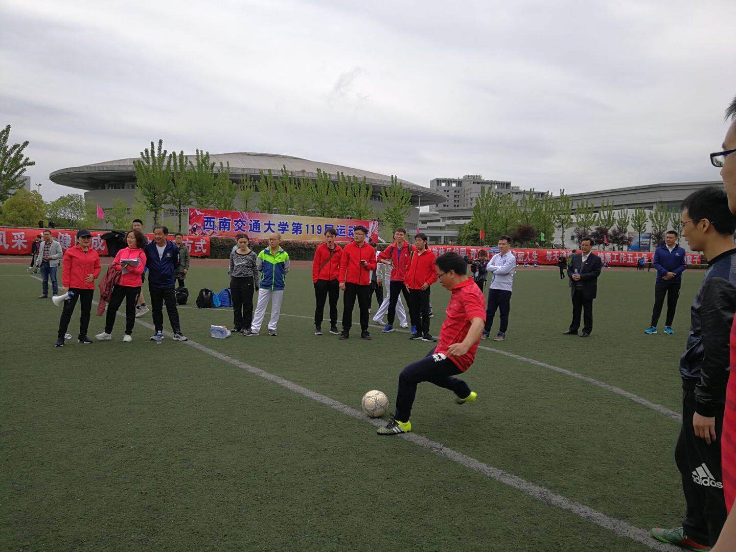 4月13日上午8:30,西南交通大学第119届运动会在犀浦校区北区体育场盛大开幕。土木学院党委刘学毅书记,艾长发副院长,李锦红副书记,工会主席李彤梅率领学院38名教师组成的代表团参与为期两天的比赛。我院教职工们也响应学校“每天锻炼一小时,健康工作五十年,幸福生活一辈子”的号召报名参加了60m短跑,100m短跑,4*100m接力、立定跳远,铅球等竞赛项目和10*60m接力、跳长绳、集体投篮、足球射门4个集体项目的比赛。