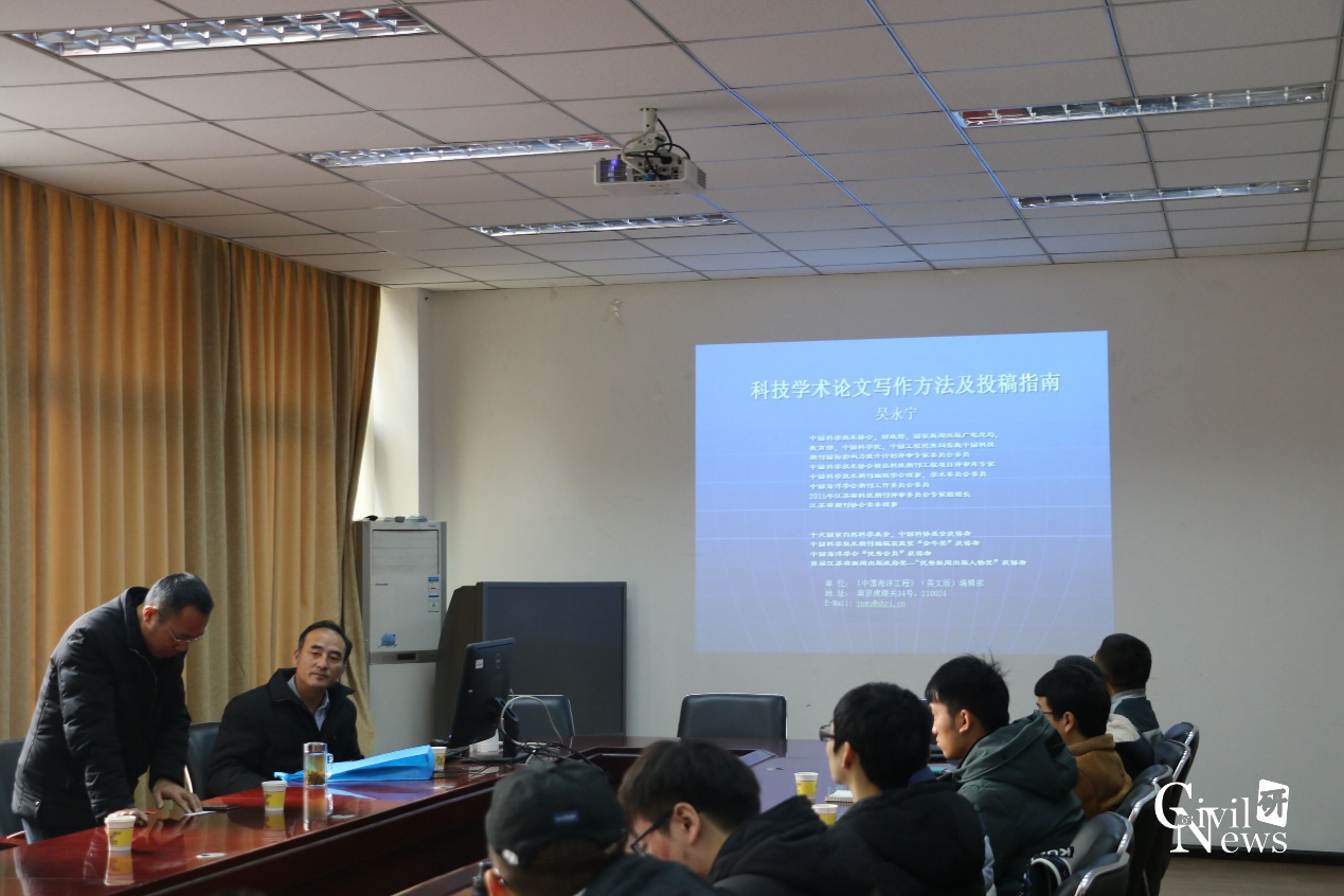 2017年12月23日上午十点,在我校九里校区土木馆1324室举办了以“科技学术论文写作方法及投稿指南”为主题的学术讲座,本次讲座的主讲人为吴永宁高工,由我校土木工程学院岩土工程系杨兵副教授主持,土木工程学院部分老师和同学参加了此次讲座。