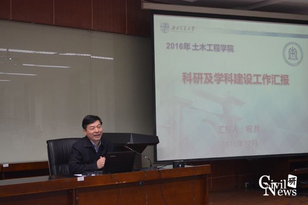 12月22日下午,土木工程学院在九里校区逸夫楼举行了2016年基层党建考核暨中层领导干部年度考核大会。大会应党委组织部要求对中层、助理及科职领导干部进行了年度考核。会议由李彤梅副书记主持。会上,各领导干部将自己全年的工作情况进行了汇报,并指出了各自工作存在的不足以及对未来工作的规划,全院在职在岗教职工参加了该会议并参与了民主测评环节。本次会议期间还穿插了钱永久书记、李锦红副书记以及李彤梅副书记的换届考察测评。