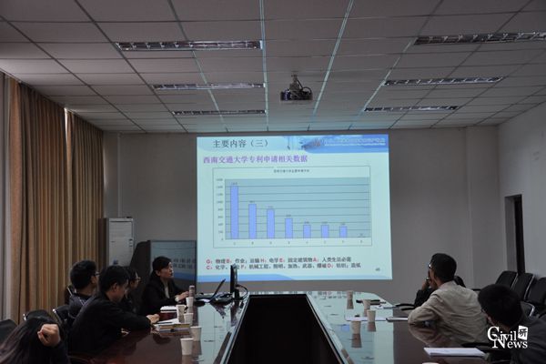 2016年10月24日,国家知识产权局专利局材料工程发明审查部秦奋处长一行六人,应邀来我校作学术报告和交流,其报告主题为“国家专利相关知识”,我校土木学院副院长祝兵教授、桥梁系副主任占玉林教授、建工系潘毅等老师及相关研究生参加。同时,四川省建设科技协会、四川省抗震防灾协会、四川省建筑科学研究院、四川省建筑设计研究院等省内多家单位的相关同志也参加了此次报告和交流。