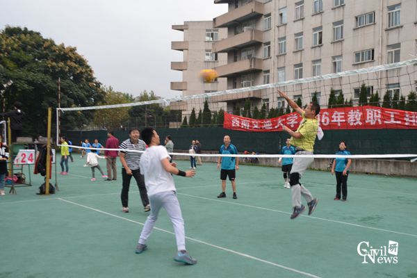 10月10日下午,2016级西南交大教职工排球赛第九到十二名的争夺赛在交大九里校区排球场上演。对阵双方为土木学院与外语学院。经过激烈的角逐之后,我院以总比分0:2不敌外语学院,遗憾无缘第九。