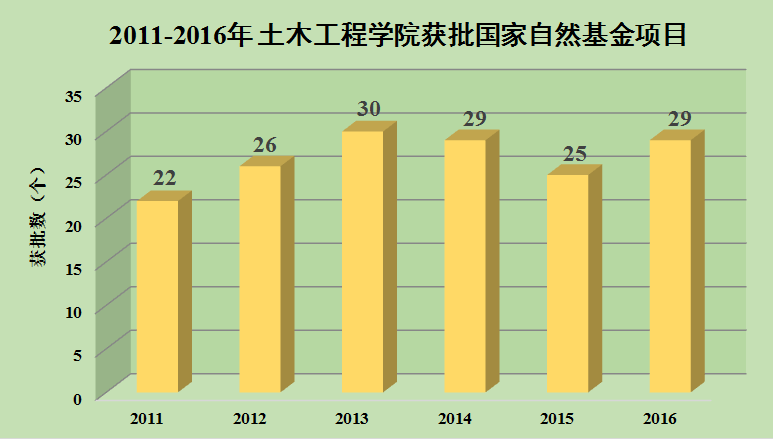 2011~2016年 土木工程学院获批国家自然科学基金项目数量