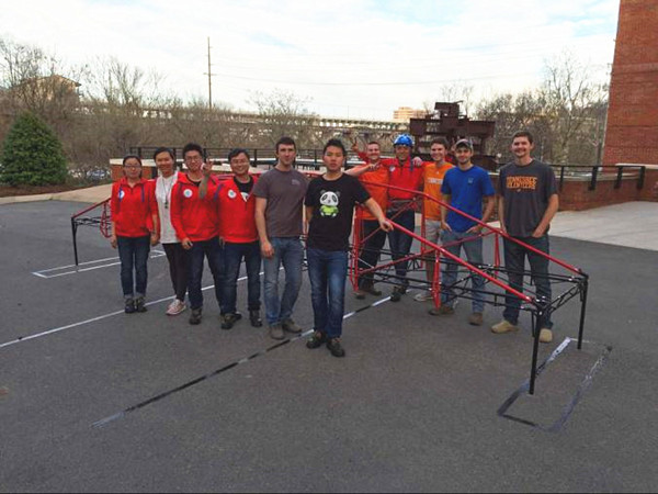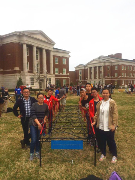 美国中部时间2016年3月11日至13日,ASCE(美国土木工程师协会)东南赛区结构设计竞赛在阿拉巴马大学举行。共计20余所大学代表队参加该赛区的竞赛,西南交通大学作为田纳西大学的邀请队首次参加该项赛事中的钢桥比赛,是国内仅有的四所(同济、东南、浙大、西南交大)参加此项竞赛的高校之一。本次参赛在西南交通大学土木工程学院高波院长、崔凯副院长、桥梁工程系李亚东主任等的精心组织下,学院组建了占玉林副教授、何畏副教授、张锐老师、栗怀广老师任指导老师的指导小组。并于3月份派出了由张锐老师任领队,肖林老师任副领队,董佳慧、祝泽晖、张乾、孙朝阳、葛良福、韩嘉怡等6名本科生作为正式参赛队员的参赛队伍。我校参赛队伍顺利通过展示、现场拼装、尺寸检验、称重、侧向加载、垂直加载、挠度测定等环节,凭借独特的造型和节点设计以及默契的拼装配合夺得众多美国高校的关注及好评。我校由于首次作为邀请队参赛,不参与最终评奖。