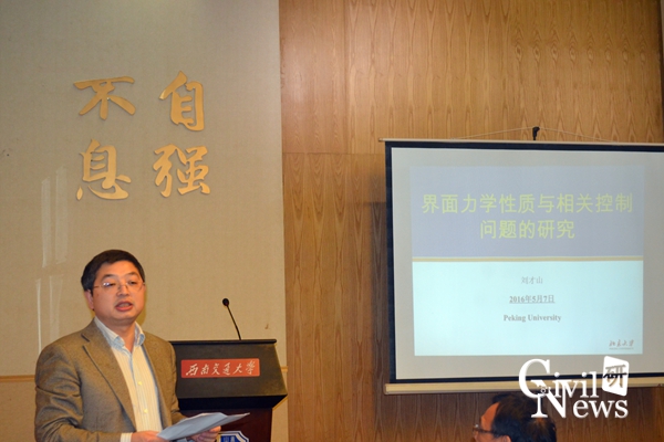 2016年5月7日下午15:00在镜湖宾馆院士厅举办了以界面力学性质及相关控制问题研究为主的研究生学术讲座。此次讲座是迎接西南交通大学120周年校庆的系列学术活动之一,由高速铁路线路工程教育部重点实验室承办。主讲人为北京大学航空航天工程系教授刘才山和北京大学航空航天系副教授赵振。讲座由我校道铁系王平教授主持,参加讲座的主要有肖杰灵,韦凯等老师以及道铁系的研究生。本次讲座主要内容为结合主讲人多年在碰撞/接触与摩擦以及复杂系统动力学方面的研究,为解决目前铁路上的难题提供相关的力学指导。