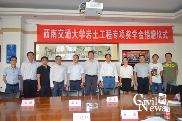 5月11日下午15:00,西南交通大学土木工程学院岩土工程专项奖学金捐赠仪式在土木学院1208会议室举行。