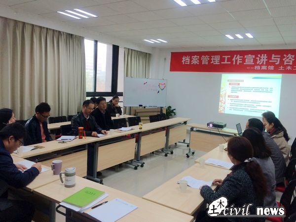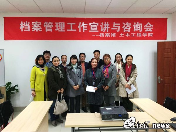 为加强学院档案管理工作的有序性和有效性,土木工程学院学工组党支部邀请到校档案馆共同开展了档案管理工作宣讲与咨询会,出席本次活动的人员有校档案馆馆长高平平、土木工程学院党委李锦红副书记、土木工程学院团委副书记石莹,以及档案馆相关工作人员和土木学院学工组、行政办、本科教学、系室等相关工作人员。