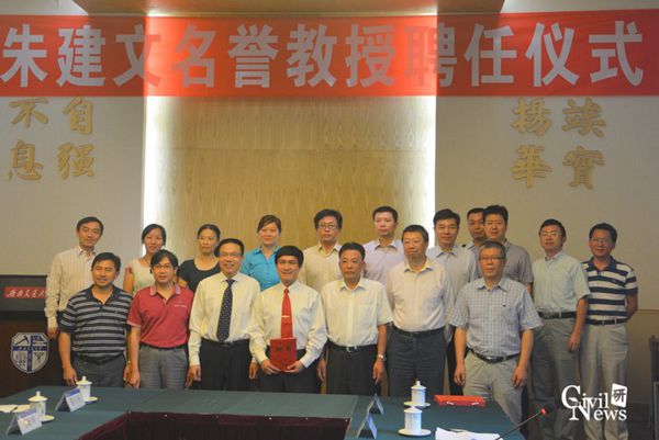 2015年6月22日下午五点,朱建文教授的名誉教授聘任仪式在镜湖宾馆院士厅隆重举行。本次会议由土木学院高波院长主持,秦顺全院士、徐飞校长、晏启鹏副校长、土木学院钱永久书记、郝莉教务处长、祝兵等桥梁系多位教授和老师出席了本次仪式。