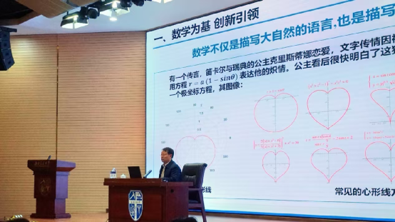 在“数学为基、创新引领”这一主题中,黄卫院士强调了数学在科学研究过程以及工程问题解决中的重要性,力争把工程问题转化为数学问题,用数学进行建模,提升效率、攻破瓶颈。“复杂的问题简单化,才是科学的正道。”黄卫院士还以“笛卡尔与瑞典的公主克里斯蒂娜恋爱”故事,激励大家学好数学,将来可以运用数学相关知识有效突破问题瓶颈。