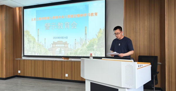 郑江书记在警示教育会上向全院教职工通报了学院近期的学术不端事件,她在通报过程中,深入剖析了问题根源,并要求全院教职工引以为鉴,深刻反思,结合深入贯彻中央八项规定精神学习教育,进一步加强自身的师德师风建设。学院也将持续完善监督机制,建立定期形势学习制度,强化基层调研与问题查摆,切实推动学院作风建设取得实效。