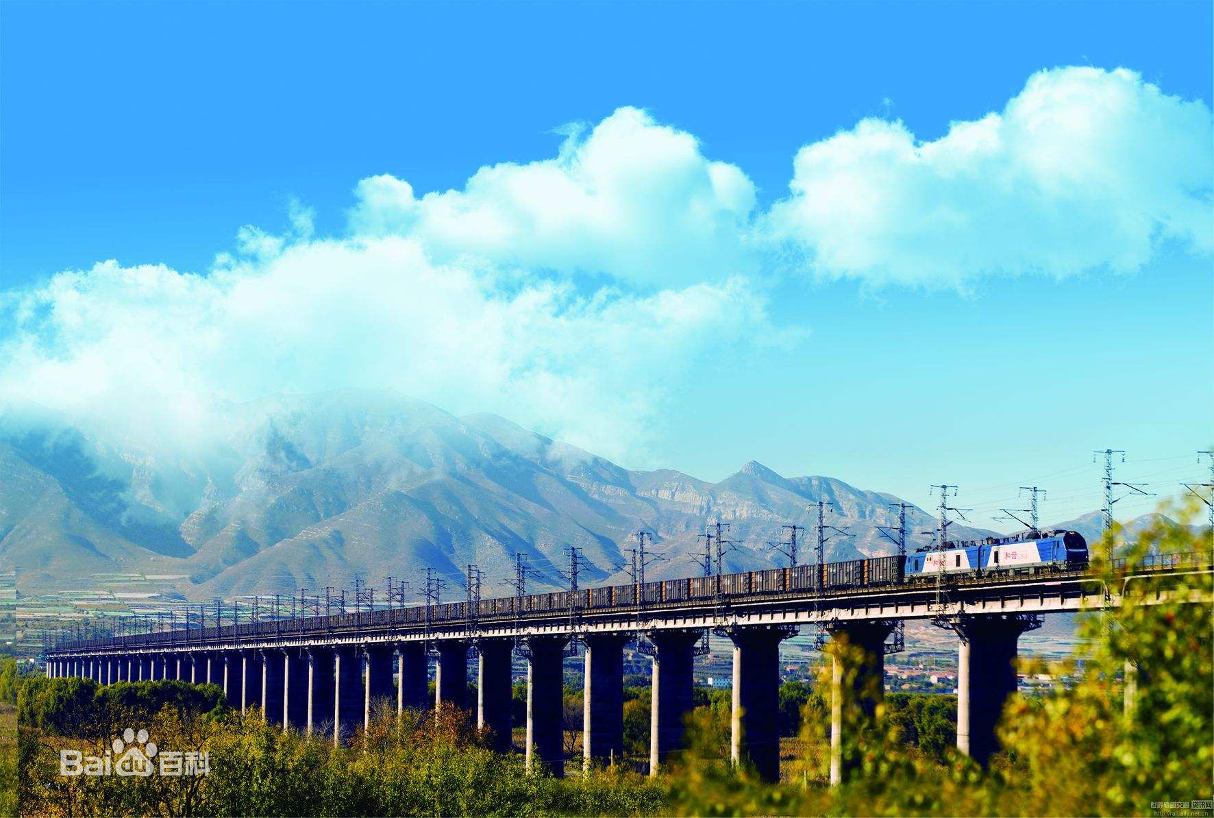 2) 大秦铁路工程浩大艰巨,地质复杂多变,因断层交错、地形倾陡、山峦重迭而桥隧相连;线路经过454座桥梁、52个隧道,有时一列车同时穿过2座隧道,曲线坡道此起彼伏,列车常扭出三四个曲线和七八个起伏。